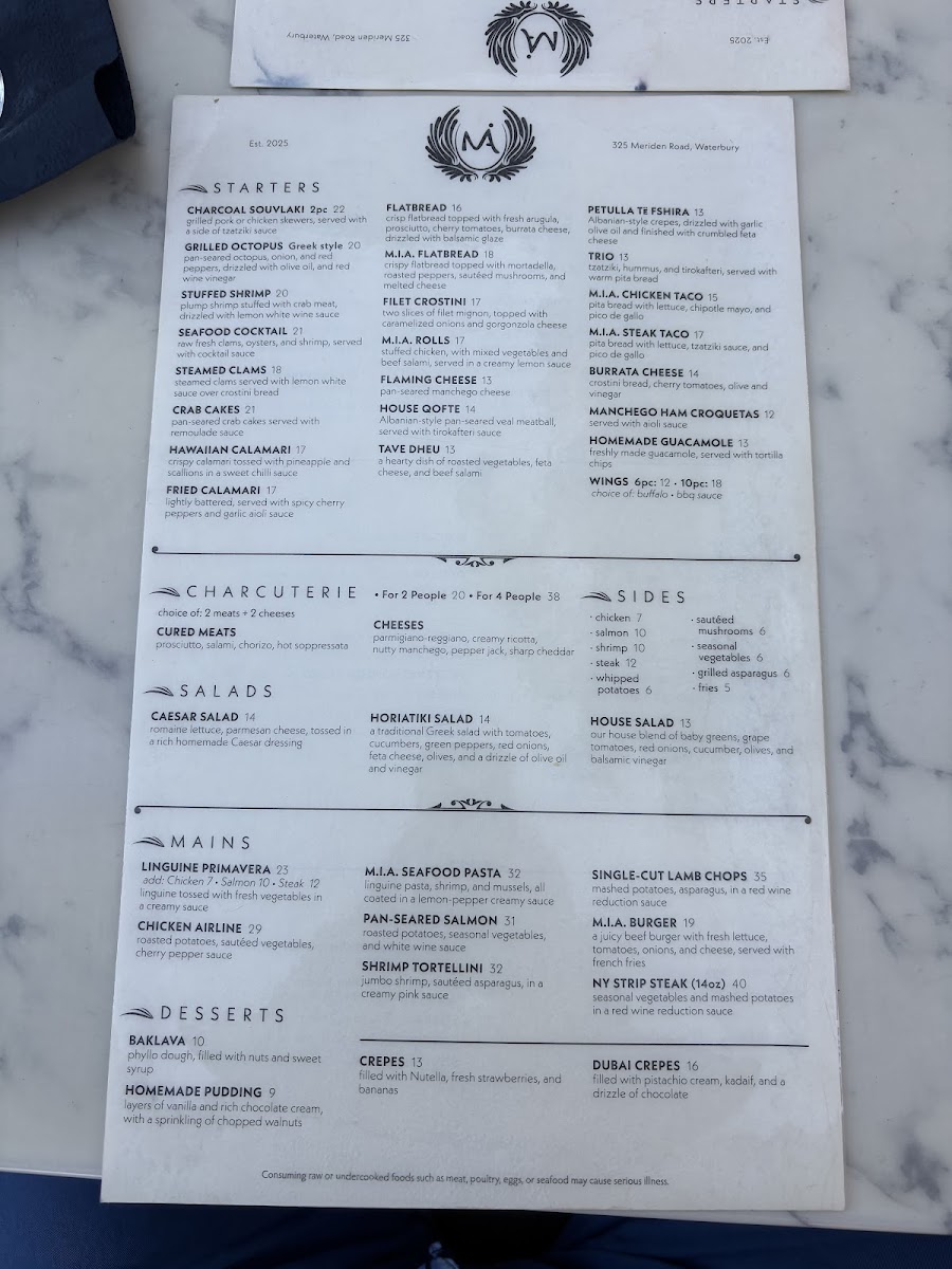 M.I.A Cafe Lounge Menu